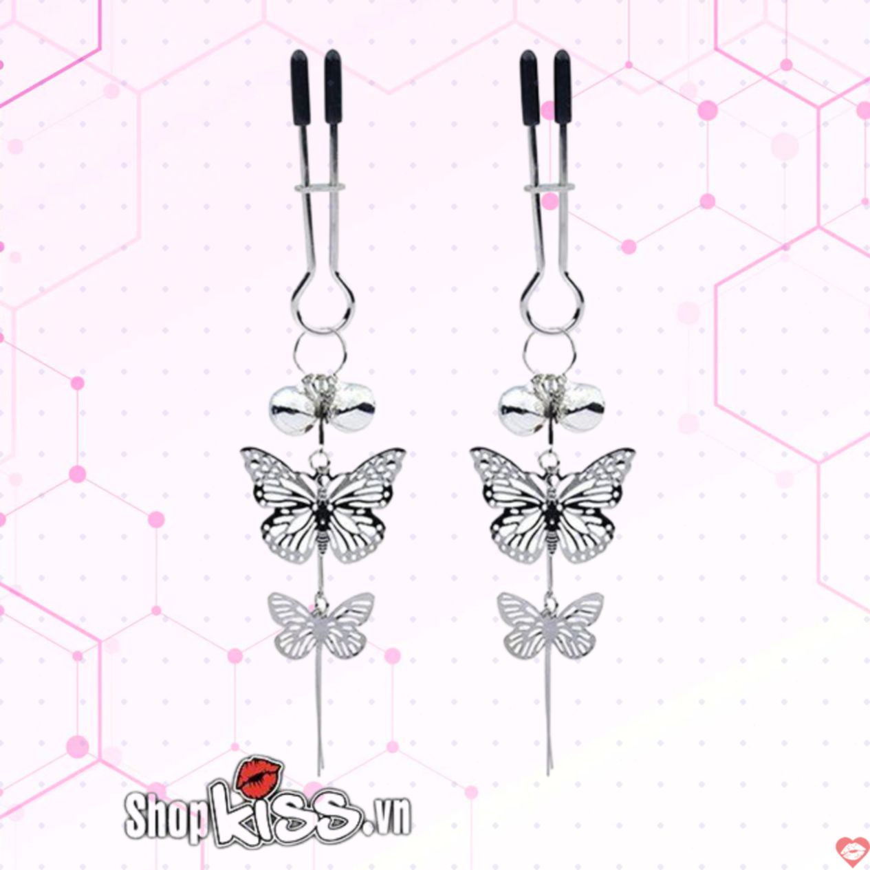 Bộ kẹp vú kèm họa tiết bươm bướm BZ08Y khi kích thích lên đầu ti sản xuất sẽ tạo cảm giác đau tê tê vệ sinh và khiến người bị khổ dâm cảm thấy thỏa mãn.