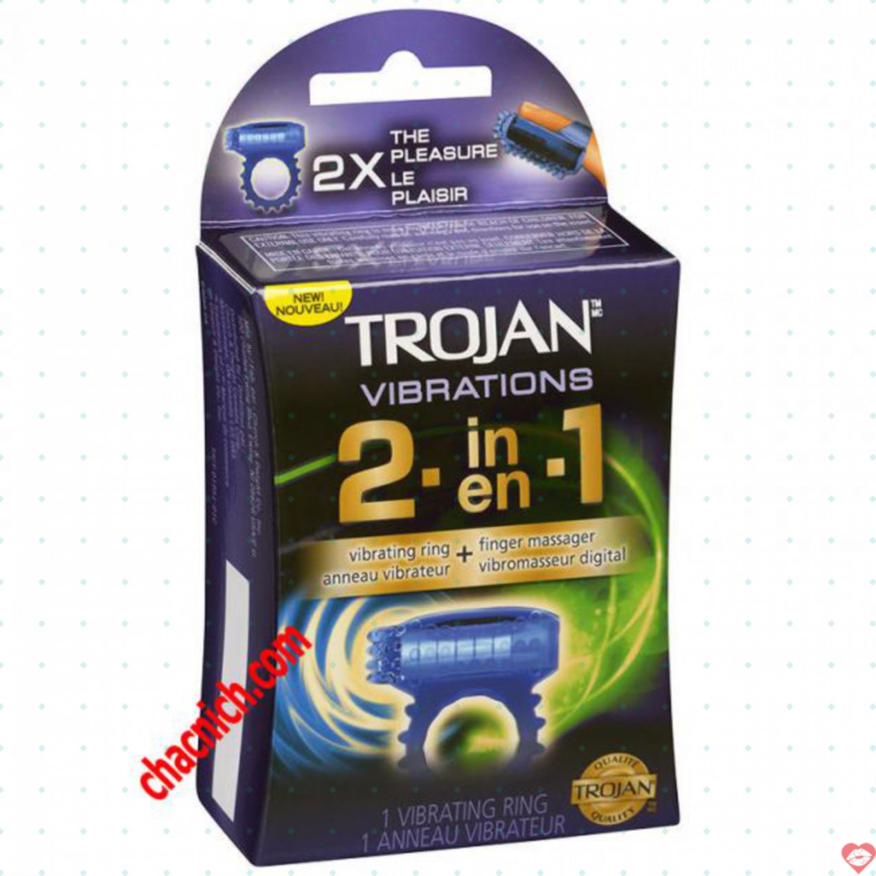 Vòng rung Trojan 2 in 1 vừa làm vòng rung đeo vào dương vật vừa khuyến mãi có thể đeo vào ngón tay Hàn Quốc để Massage đa điểm nhạy cảm trên cơ thể bạn nữ mang lại cảm giác cực khoái cho cả hai đều hướng dẫn được.